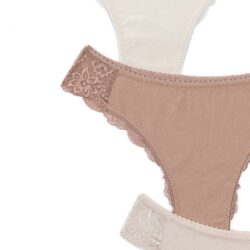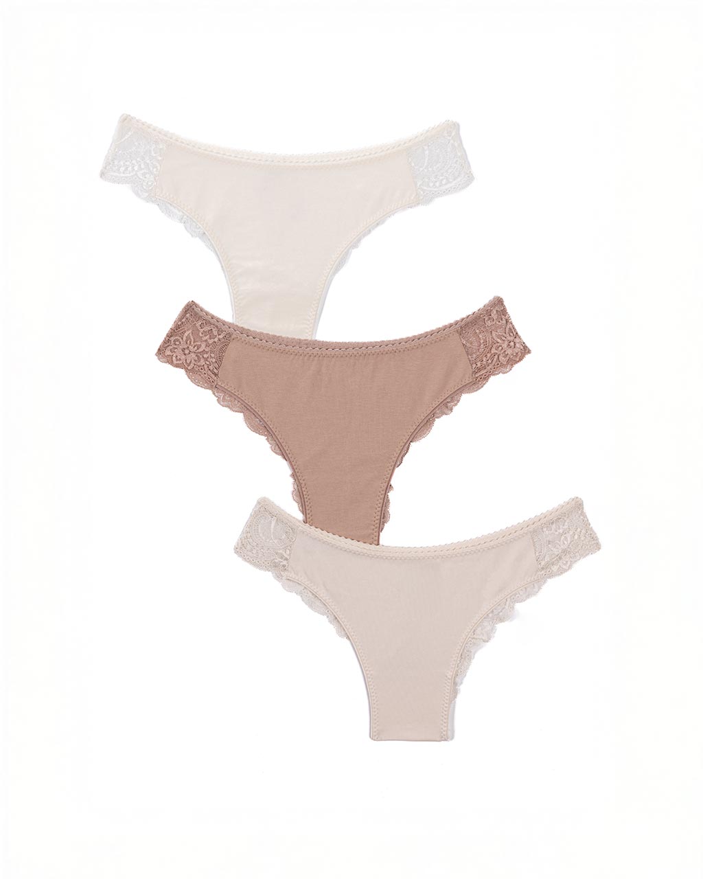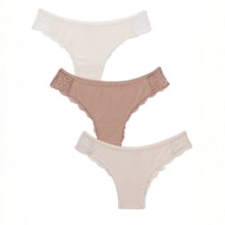 Ženske brazilijane savršeni spoj udobnosti i ženstvenosti. Prednji deo od mekanog pamuka pruža prijatan osećaj na koži, dok čipkasti zadnji deo dodaje romantičan i zavodljiv izgled. Ideane za svaki dan kada želiš da se osećaš udobno, ali i posebno. Cena je za 3 komada.
