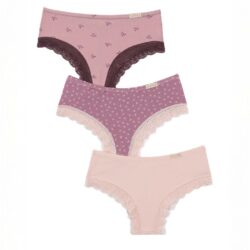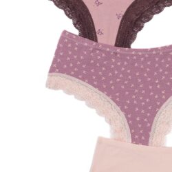 Ženski brazilijane Rina elegantne i udobne slip gacice sa čipkom koja dodatno daje na eleganciji i osećaju lakoće. Mekani pamuk prijatan na koži čini ih idealnim izborom za svaki dan.Cena je za 3 komada.