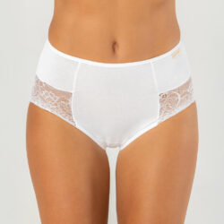 Ženski slip Pamela model visokog struka izrađen od nežnog pamuka, sa elegantnom čipkom napred koja dodaje profinjen i romantičan izgled. Idealna ravnoteža udobnosti i ženstvenog stila.Cena je za 3 komada.