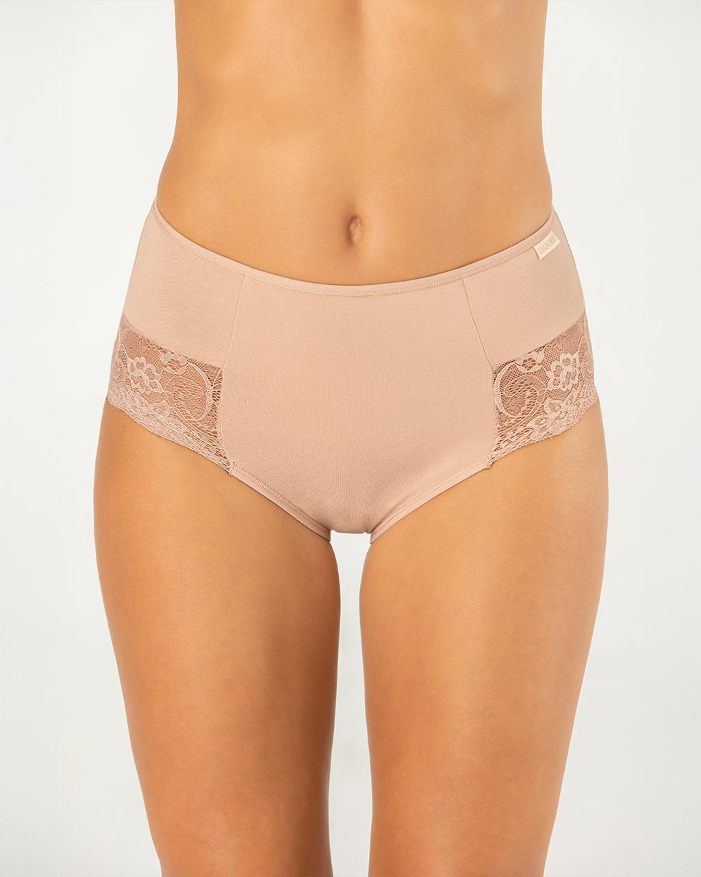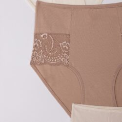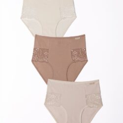 Ženski slip Pamela model visokog struka izrađen od nežnog pamuka, sa elegantnom čipkom napred koja dodaje profinjen i romantičan izgled. Idealna ravnoteža udobnosti i ženstvenog stila.Cena je za 3 komada.